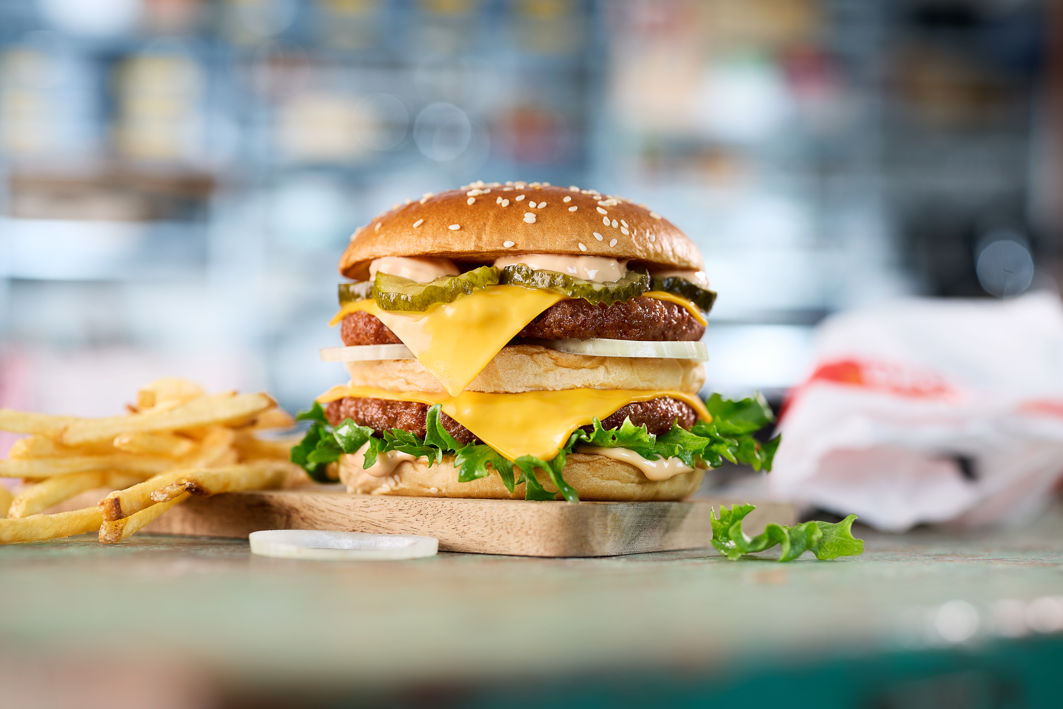 Burgeren kan også bestilles med bacon. Gæsterne kan selvfølgelig også skifte proteinet ud med Plant Beef, hvilket gør BIG Classic til MAX's største vegetariske burger.
